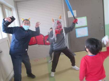 朝の学習が終わった時,鬼が登場。
