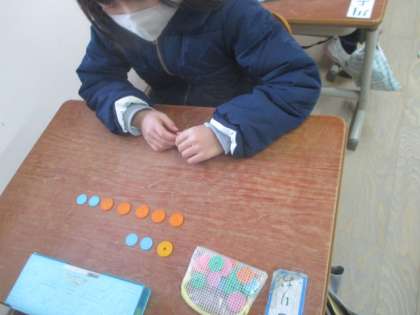 すごろくやお金を使って学習しています。