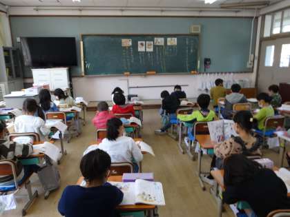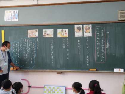 道徳の時間に,「一りん車」というお話を読みました。さし絵を見たり,登場人物の気持ちになったりしながら,きまりについてみんなで考えました。