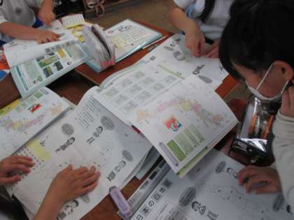 社会科の初めての学習は,日本地図を広げて,47都道府県を覚える学習から始まっています。今日は,都道府県シールを,日本地図を見ながらグループで協力して貼っていきました。なかなかすぐには覚えられないでしょうが,これから都道府県カルタなどもしながら,楽しみながら47都道府県の位置や名前,特産物も覚えていけるように,学習を深めていきます。
