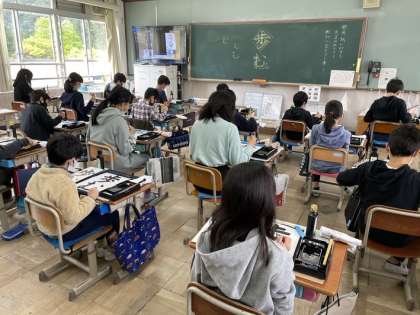 お手本と自分の字を見比べながら,「はね」や「とめ」などを意識して一生懸命取り組んでいました。