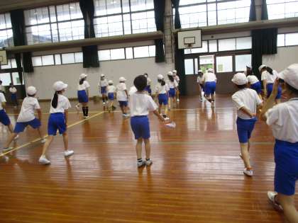 そこで,今日の体育は,体育館でリレーとドッジボールをしました。