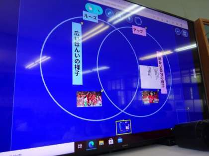 国語科では,「アップとルーズで伝える」の伝えるの学習を終えました。アップで伝えられること・伝えられないことと,ルーズで伝えられること・伝えられないことについて筆者が対比している内容を読み取り,筆者の考えに対する自分の考えもまとめて発表します。板書やノートでまとめた内容を,ロイロノートで図にまとめる練習もしています。