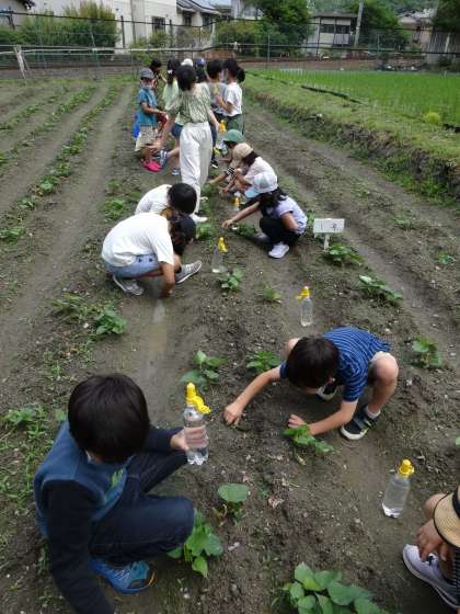 みんなで植えたサツマイモも,毎週水やりと草抜きをしています。こちらも,天気がよかったからか,きれいなみどり色のはっぱがふえていました。