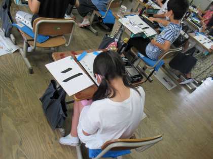 習字の学習も2回目に入りました。前回の学習も思い出しながら,準備や後片付けもできていました。今日は「二」の漢字の書き方を学びました。集中して取り組むことができていましたね。