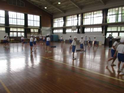 4年生では,体育科で「ソフトバレーボール」の学習をしています。トスやレシーブ,サーブなど,少しずつ練習しながら,今日は試合形式で楽しく対戦しました。ルールを理解し合いながら,プレーではチームワークが大切なことなどを学びました。