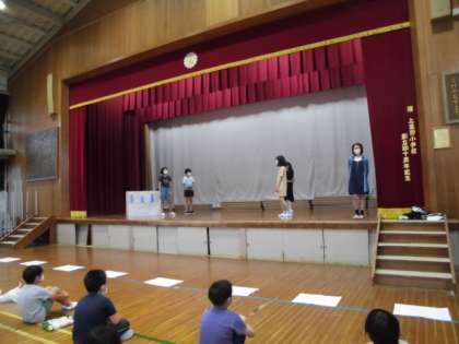 16日の中間休みに,保健委員会の皆さんから,4年生にむけて寸劇を通して,水道の使い方などのお知らせをしてくださいました。フッ化物洗口の水道での流し方や,絵の具や書道で使った墨等での汚れの後始末の仕方,丁寧な手洗いの仕方,水の飲み方など,楽しく分かりやすく教えてもらいました。明日からの,学校生活に活かしていけたらと思いました。