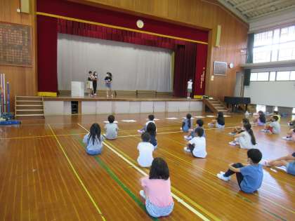 木曜日の中間休みに,保健委員会の人たちから3年生に水道の使い方やフッ化物洗口の仕方などを,わかりやすく劇で発表をしてくれました。手の洗い方については,保健委員会の人たちと一緒に真似をしてやっている様子も見られました。次に活かしてほしいです。