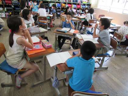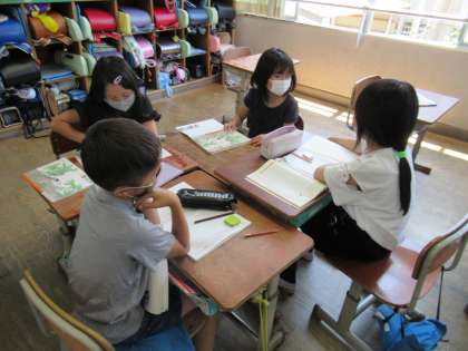 本日の学習では,まとめとして感想を書いたものをグループで交流しました。友達の感想を聞いて共感したり,ちがったところなどを伝えることができました。