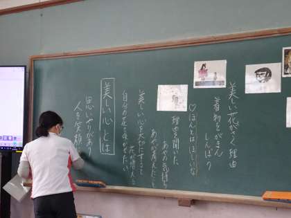 4年生の道徳では,2学期から岩下先生に担当してもらっています。今日は,美しい心について考える「花さき山」の学習をしました。人のことを思いやって,やさしさをかけた時に,心に美しい花が咲くことについて考え,たくさん自分と重ねながら意見を発表している子ども達の姿が見られました。