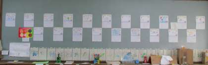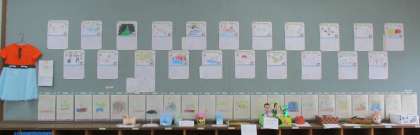 子どもたちが,夏休みに取り組んだ作品を掲示しています。絵日記は,夏休みの出来事を一生懸命かいてくれました。楽しかったことやうれしかったことがたくさん書かれていました。楽しい様子が伝わってきました。