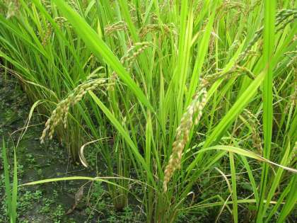 夏休みごろから実を付け始め,今では稲穂が垂れるようになりました。