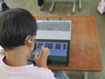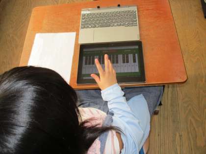 1年生の音楽では,鍵盤ハーモニカの学習があります。緊急事態宣言発令中ですので,ふき口から息を入れて音を出すことができません。今日は,GIGA端末を使って指を動かす練習をしました。やはり音が出るので,子どもたちは学習に意欲的でした。本当の鍵盤ハーモニカがふけるようになるまで,しっかり練習していきたいです。