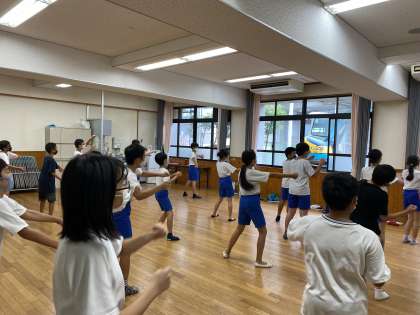アップテンポの曲に合わせてステップの練習をしています。なかなか体が追いつかないくらいの速さですが,何度も練習を重ねるうちに少しずつできるようになってきました。