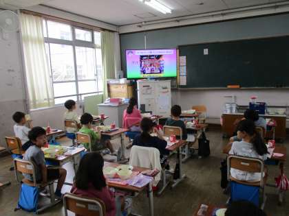 京都市の給食の献立には,なごみ献立という給食があります。今月は「月見」にちなんだ「ごはん・すまし汁・さといものにつけ・ぎゅうにくのしぐれに・ぎゅうにゅう」という行事献立でした。里芋の煮つけはスチームコンベクションオーブンを使って作ってくださっています。里芋のほくほくの食感とやさしいだしのうま味がとても感じられる給食でした。1年生は,この里芋の煮つけを気に入った子どもが多く,おかわりして食べていました。今日もおいしかったです。ごちそうさまでした。