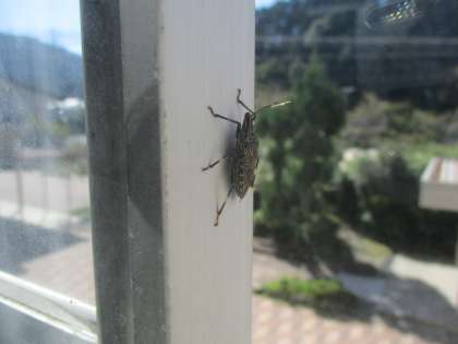 1年生は,生活でいろいろな秋の虫をみつけています。休み時間,教室の窓のサッシに大きなカメムシがとまっていました。あまり見たことがない大きさで,1年生のみんなもびっくりです。調べてみると,キマダラカメムシという国内では大型の美しいカメムシだそうです。子どもたちは,興味津々で見ていましたがあまりの大きさにちょっと近づくのは難しそうでした。