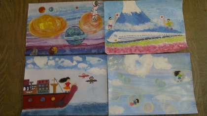 それぞれの世界観や感性の豊かさが絵に表現されていて,一人一人のこだわりの作品に仕上がっていました。