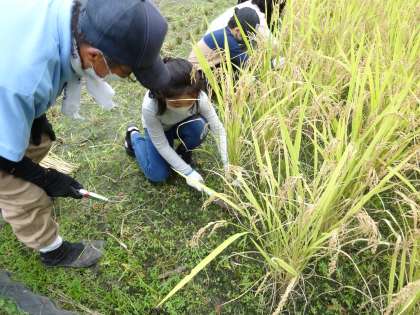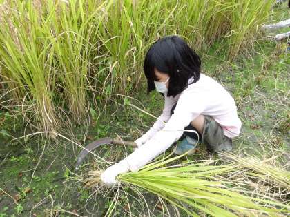 稲刈りでは,地域の方々にも来ていただき,かまの使い方を教えてもらいながら,良い経験ができました。