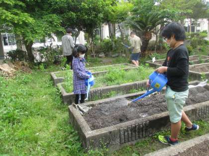 今日,水やりに出かけると…キュウリと小松菜の芽が出ていました!大きくなるのが楽しみです。