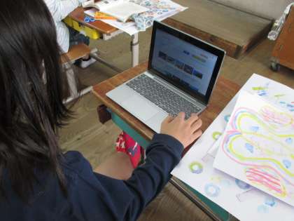 タブレットで検索しながら何を描くのか考えている様子でした。