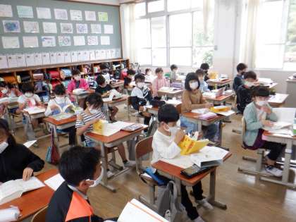 3年生の国語科で,「国語辞典の使い方」の学習をしました。言葉が50音順に載っていることを確認し,いろんな言葉を調べてみました。今後もさまざまな場面で国語辞典を活用することで,だんだんと慣れていってほしいと思います。