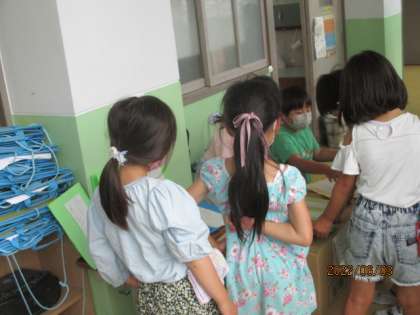 1年生と2年生が交流する姿は,ほのぼのとしています。