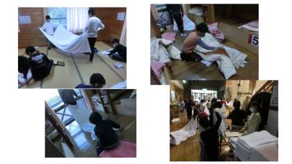 まずは寝具をたたむなど,準備と片付けからスタートです。