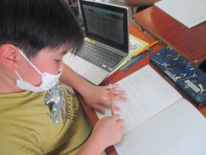 今日の社会の学習では、京都府にはどのような自然災害が発生したのかを予想してから調べ、ノートにまとめました。