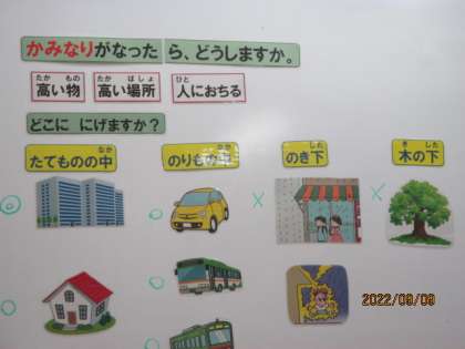 「かみなりがなったら、どこに、にげますか。」の質問があり、