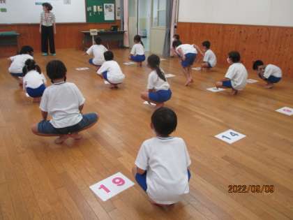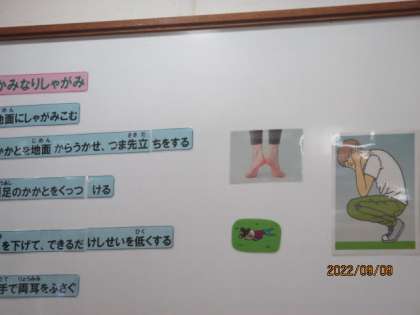 そして、何もない原っぱのような場所では「かみなりしゃがみ」をして