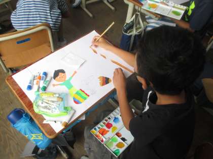 4年生は図画工作の学習で「お話の絵」を描いています!