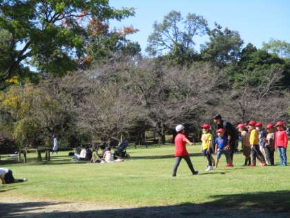 芝生広場での自由遊びの時間は、思いっきり走り回ったり、寝転んだりして、楽しい時間を過ごしました。