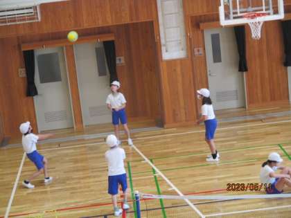 体育では「ソフトバレーボール」の学習を進めています。チームで声をかけあう、コートに広がって構えて待つ、など、4年生の時の経験を生かして学習に取り組んでいる姿が素晴らしいです。これからチームでいろいろな作戦を立てていくことを期待しています。