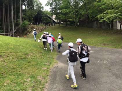午前中の活動はスコアオリエンテーリングです。各ポイントにある問題をグループで相談しながら進みます。気をつけていってらっしゃい。