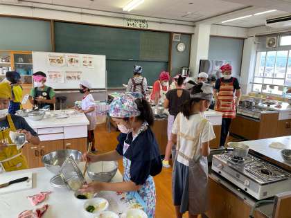 子どもたちが楽しみにしていた調理実習がありました。ほうれん草のおひたしと、ゆでいもを作りました。野菜の種類によって必要な茹で時間が違うことを確かめました。子どもたちはグループで協力し、テキパキ手際よく調理していました。頼もしい5年生です。