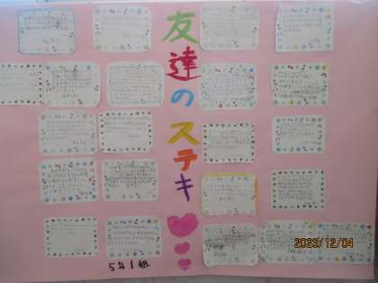 お話を読んでいただきました。そこから、友達について一人ひとり考え、