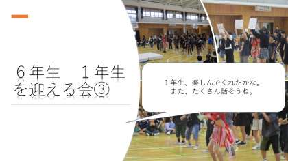 1年生を送る会に6年生は、ダンスと早口言葉を発表しました。子どもたちは、はじめは少し恥ずかしそうに練習していましたが、何度か練習するころには、みんなノリノリで楽しく踊っていました。早口言葉も、簡単なようで難しく、1年生も全校のみんなもとても喜んでくれました。「人を楽しませること」は準備もたいへんですし、みんなの協力も必要です。いろいろな行事などでたくさん学んで力をつけてほしいと思います。