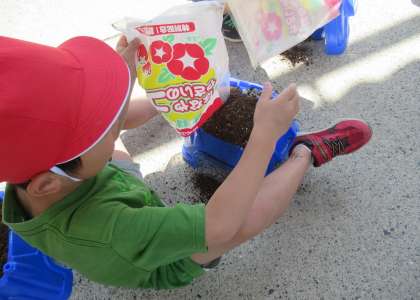 1年生 あさがおの たねを まこう