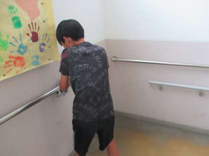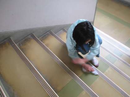 1番に掃除を始めて、黙々とみんなが使う階段を
