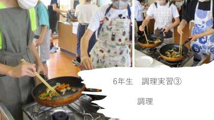 家庭科で調理実習をしました。いろどりいためを作りました。今回は一人ずつ野菜やハムを切り、一人ずつ交代しながら炒めて調理をしました。自分で作った料理は格別でとてもおいしかったようです。ぜひ、おうちでも感想を聞いてあげてください。