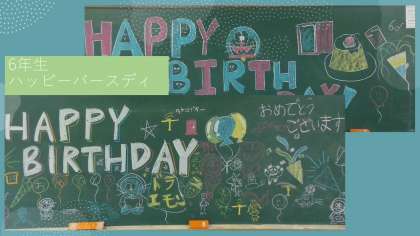 6年生は、友だちのお誕生日の日に黒板にいろいろお祝いメッセージを書いて祝ってくれます。今日は担任の誕生日でした。教室に入ると、みんなに拍手でも迎えられお祝いをしてくれました。まさか担任の誕生日までお祝いしてくれるとは思っていませんでしたので、驚きとうれしさでいっぱいになりました。