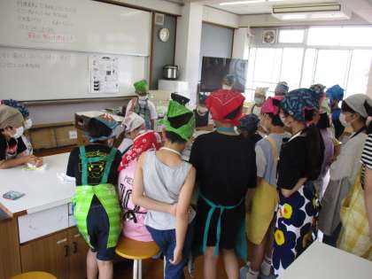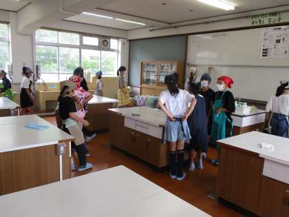 5年生から始まった家庭科の学習ですが、ついに家庭科室の扉を開きました。家庭科室にはどんなものがあるのか、他の教室との違いはなにかを調べました。その後、初めての調理実習でお茶をいれました。グループで協力する姿が素敵でした。