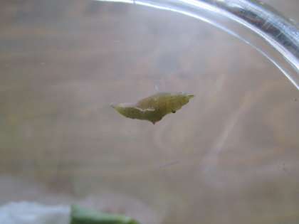 先週の金曜日には元気に動いていたモンシロチョウの幼虫が、今週の月曜日にはさなぎになっていました。