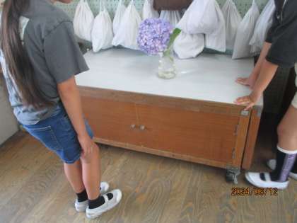 今朝、アジサイの花を教室に飾りました。