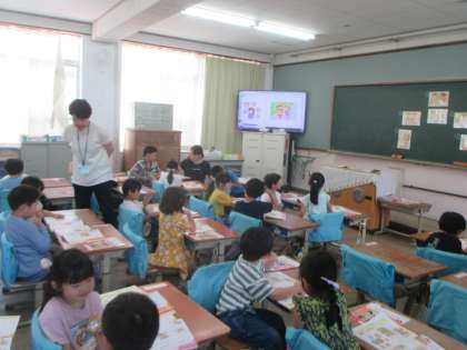 月に1回、人権に関わる学習「にこにこ学習」を行っています。今月の1年生のテーマは「ともだちときょうりょくし、なかよくしよう。」です。