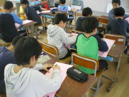 ウサギやチャボの小屋(アニマルハウス)の掃除やエサやりを毎日してくれています。それだけでなく動物たちとのふれあいもさせてくれ,休み時間のアニマルハウスは大人気です。
