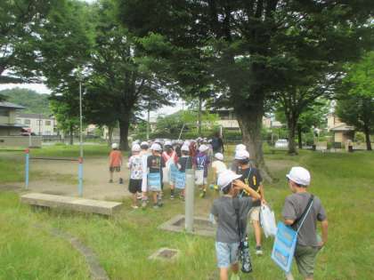 上高野の町をたんけんに行き、いろんなお店や公園を見つけました。学校に帰って,見つけたものをまとめました。次回はお寺や神社を見に行く予定です。