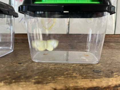さなぎだったモンシロチョウがついに成虫になりました!自然に返すためにみんなでお見送りをしました。