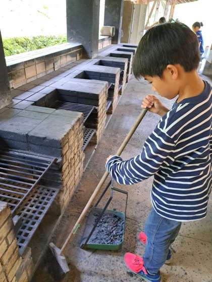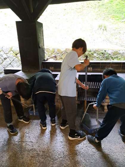 自分の班が終わったら、違う班のかまどの掃除も手伝っています。