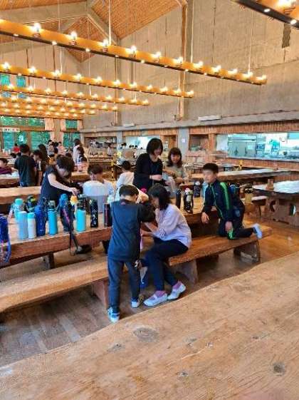 食事が終わった後、みんなの水筒にお茶を入れてくれています。